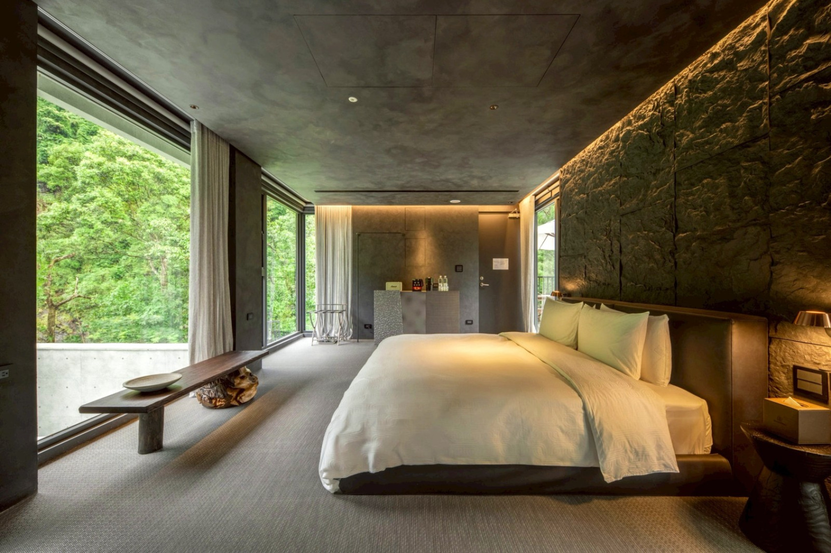 • 生活細節:每間客房皆設有溫泉,且提供 Marshall 藍牙喇叭、Dyson 吹風機 及 Karl Lagerfeld 沐浴備品,minibar 更可無限享用。特意不設電視,邀您放下螢幕,靜聽溪聲鳥語。